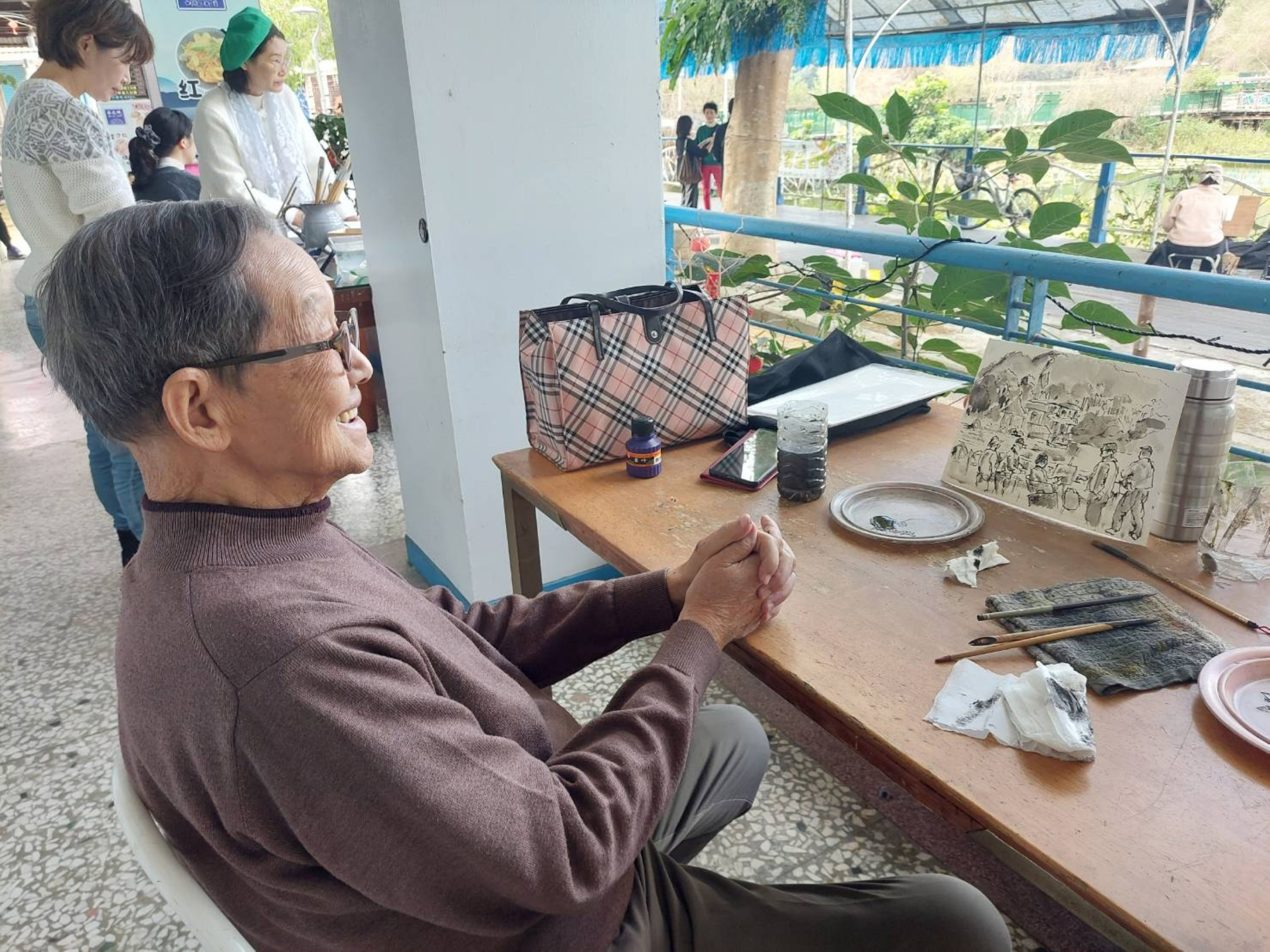 林耀堂老師畫完開心地微笑(圖:阮愛惠)